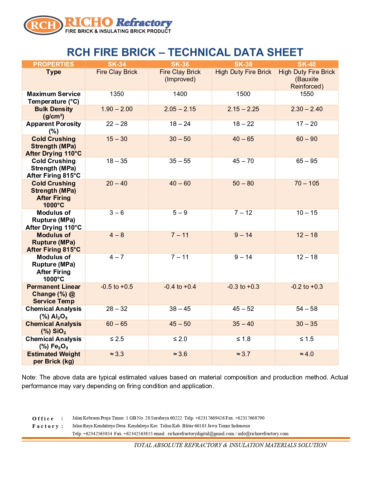 Fire Brick adalah bata tahan panas yang digunakan sebagai lining atau dinding pada peralatan bersuhu tinggi. Produk ini memiliki kekuatan mekanik yang baik dan stabilitas termal yang sesuai untuk aplikasi industri.